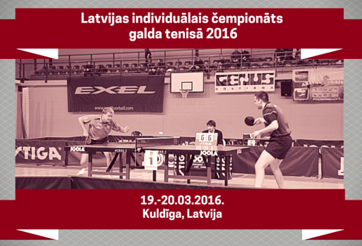 Latvian Individual Table Tennis Championships 2016 Final Tournament will take place this weekend, 19-20 of March in Kuldiga. Best 32 men and 16 women will compete for the Championship titles in Men's Singles, Women's Singles, Men's Doubles, Women's Doubles and Mixed Doubles competitions.