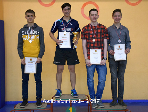 Fotogrāfijā zēnu vienspēļu godalgoto vietu ieguvēji.