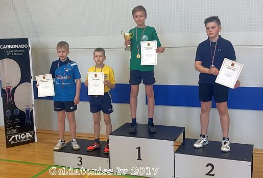 Zēniem, 22 spēlētāju konkurencē par uzvarētāju kļuva Rīgas 3.BJSS audzēknis Ģirts Gainis, kurš finālā ar rezultātu 3:1 pārspēja Haraldu Fjodorovu no "Rebirs sports", bet bronzas medaļas izcīnīja Artūrs Spalis (GTK "Namejs") un Vadims Marjonovs (Jēkabpils SS).