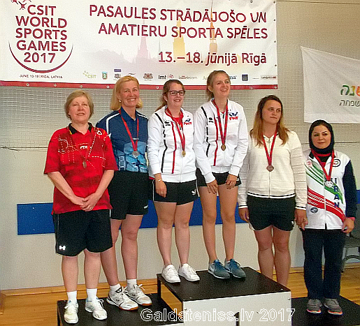 Dubultspēļu sacensībās, Latvijas sportisti ieguva sudraba medaļas sieviešu dubultspēlēs - Lidija Kalniņa un Irina Paščenko, vīriešu dubultspēlēs 4.vieta - Sergejs Kuceba un Ramūns Mineiķis, sudraba medaļas tika izcīnītas arī jauktajās dubulspēlēs - Juris Siliņs un Lidija Kalniņa, vēl jāpiemin arī bronzas medaļu ieguvēji - LEPSE Ieva LAT - KARAM ZADEH Farzaneh IRI. Līdz ar šo 5. CSIT Pasaules strādājošo un amatieru sporta spēļu galda tenisa sacensības ir noslēgušās. Vairāk skatiet vienspēļu un dubultspēļu rezultātus: CSIT World Sports Games 2017 - Singles and Doubles Results.