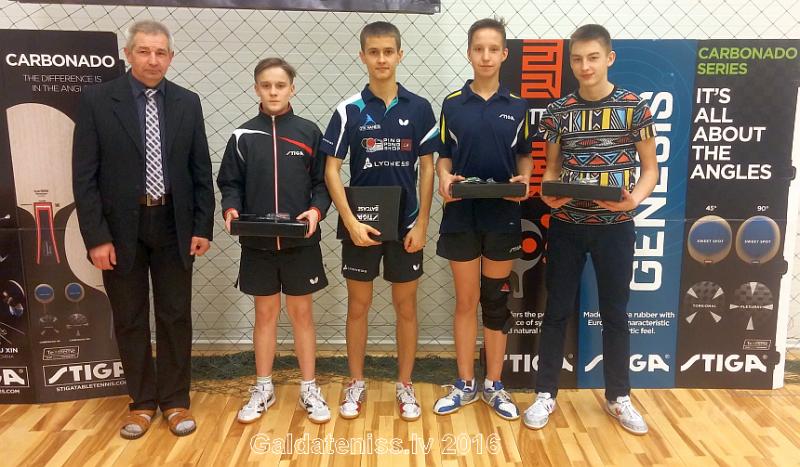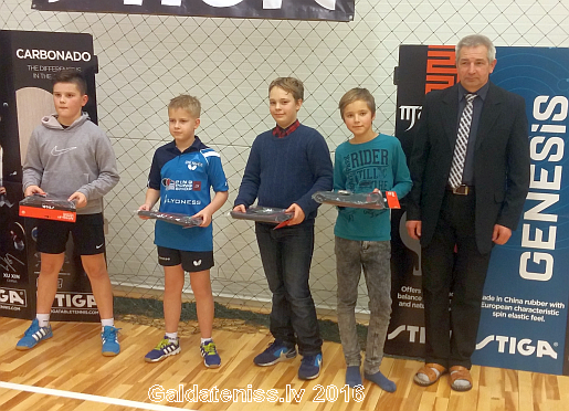 Raksta autors: Aksels Ambergs | www.galdateniss.lv (Fotogrāfijā no kreisās puses Ervīns Svīķis, zēni 2002.-2004.dz.g. Deniss Vasiļjevs (Preiļu BJSS), Valērijs Farbtuhs (GTK Namejs), Daniels Kogans (Rīga), un Markuss Sīlis (Kuldīgas SS), Aloja, 17.12.2016.)
