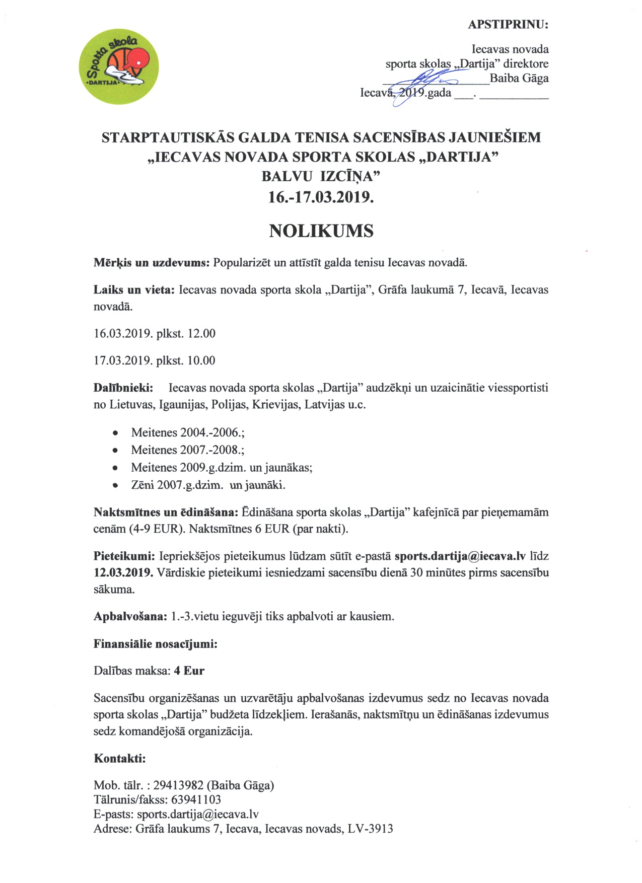 11 | 16.03.2019 | 17.03.2019 | Iecavas novada sporta skolas "Dartija" starptautiskās sacensības jauniešiem | Iecava | LAT | INFO |
