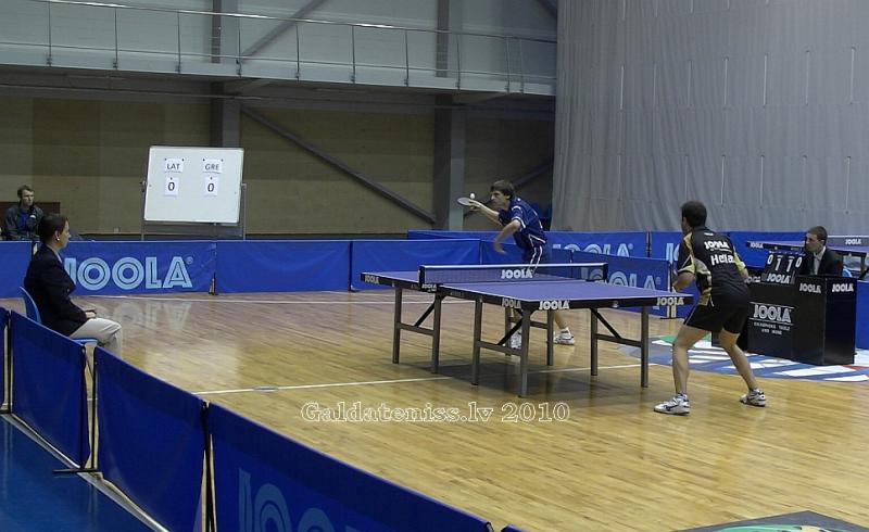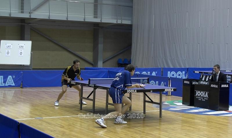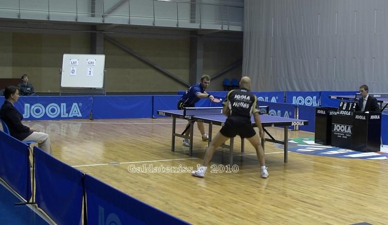 28.08.2010 В Лиепайском олимпийском центре прошел отложенный матч пятого круга мужских команд Латвии и Греции JOOLA Европейской Лиги наций 2009-2012 в стандартном дивизионе в группе А. На этот раз в командном матче против сильной команды Греции обошлось без сюрпризов, поражение 0:3. Надо отметить, что в этом матче не принимал участие лидер нашей сборной Матис Бургис. Состав сборной Латвии: Олег Картузов, Янис Цирулис, Артурс Рейнхолдс, тренер команды - Виктор Толкачев. Протокол матча Латвия - Греция 28.08.2010. можно найти на сайте LGTF |