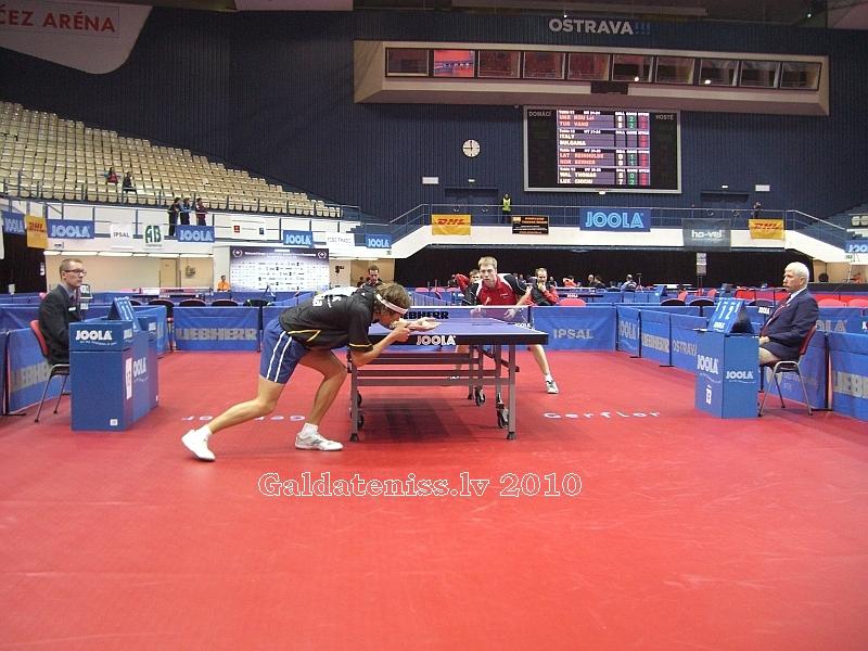 Завершился LIEBHERR чемпионат Европы по настольному теннису 2010, который состоялся 11-19 сентября в чешском городе Острава. В нем приняла участие мужская сборная Латвии: Матис Бургис, Владислав Агурянов, Артурс Рейнхолдс и Янис Цирулис. Наша команда играла в дивизионе Вызова, в группе Н с командами Италии, Словакии и Уэльса. На групповом турнире Латвия переиграла Уэльс со счетом 3:1, но Италии и Словакии проиграли 0:3, таким образом заняв третье место в группе. В дальнейших играх за 25-32 места наша команда одержала победу 3:2 над Израилем, но после этого в упорной борьбе уступила 2:3 Норвегии и Уэльсу, заняв в общем зачете 28 место. Этот результат позволил сохранить Латвии место в дивизионе Вызова. В этих командных соревнованиях шесть побед для нашей команды одержал Матис Бургис, проиграв только в двух матчах. Очень неплохо сыграл и Владислав Агурянов, одержавший три победы. Одну победу в упорной борьбе одержал Янис Цирулис, а Артурс Рейнхолдс, боровшийся во многих играх в пяти сетах, все же на этот раз побед не добился.