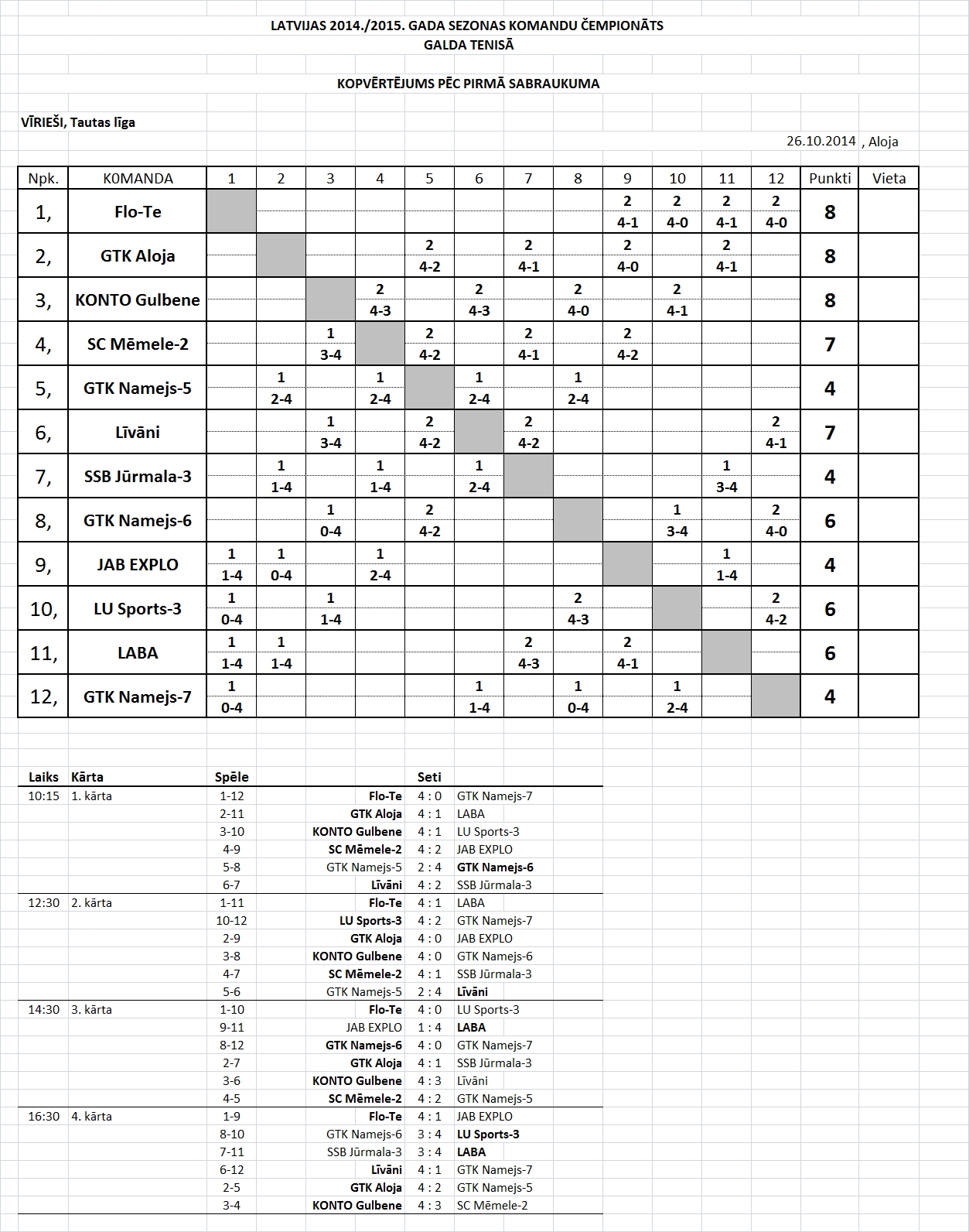 - 1-ая лига (мужчины) 1-й съезд, Алоя, 25.10.2014. - Результ.