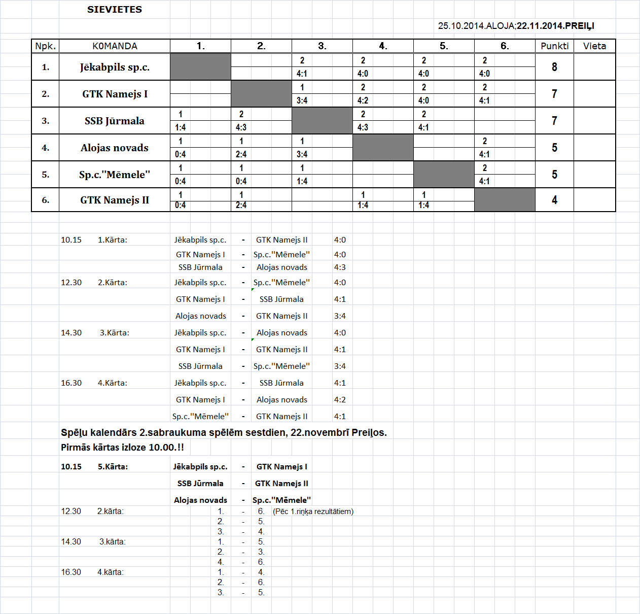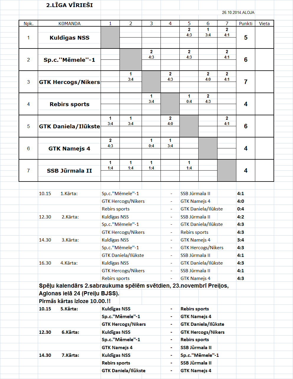 - 2-ая лига (мужчины) Таблица игр-2й съезд, Прейли, 23.11.14.